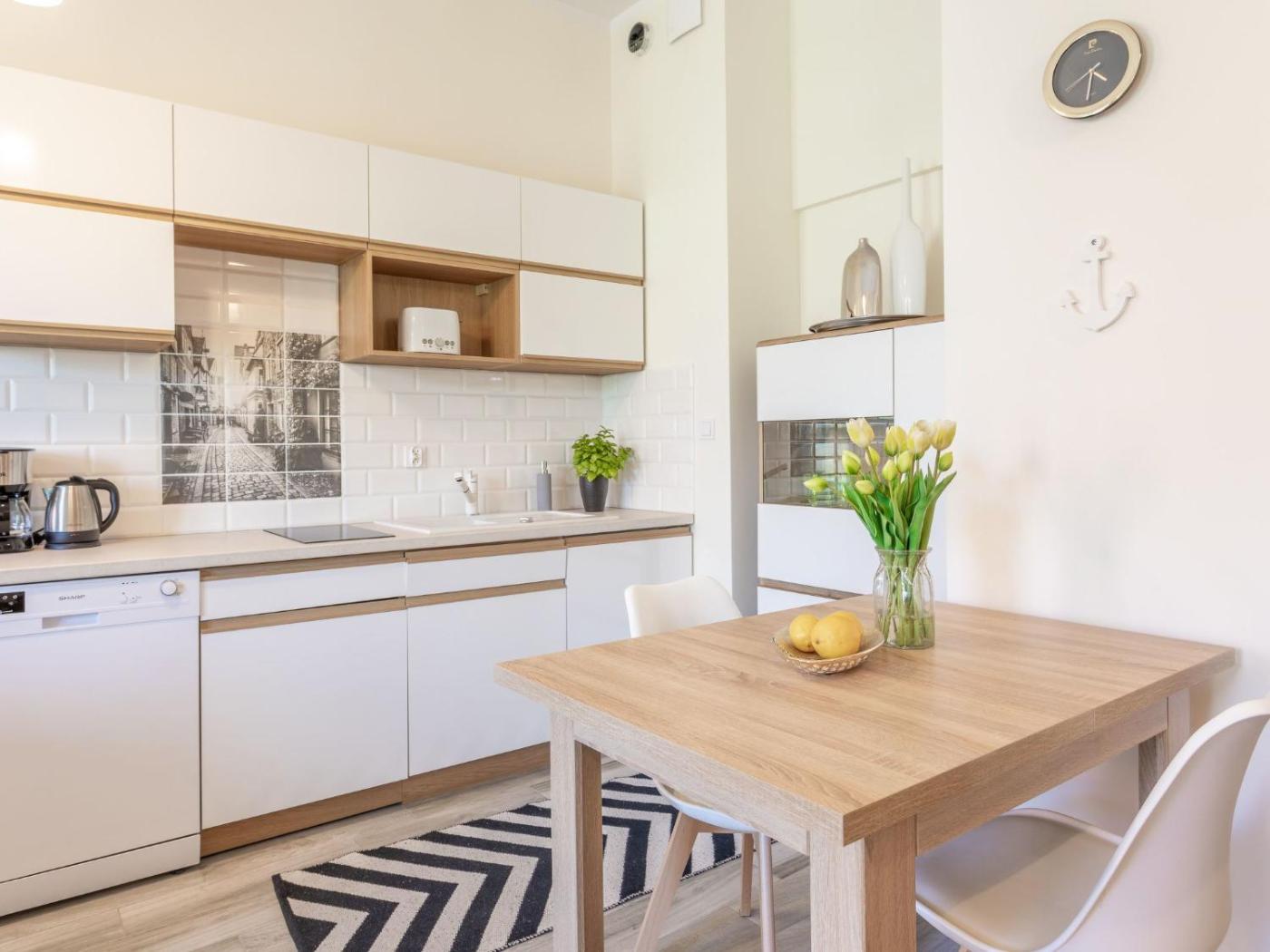Apartament. This apartment consists of 1 living room, 1 separate bedroom and 1 bathroom with a bath or a shower. The well-equipped kitchenette features a refrigerator, a dishwasher and kitchenware. Rooms on the upper floors are reachable by lift. The unit offers 2 beds. Apartament - 4 osobowy. Powierzchnia pokoju ok.: 35 mkw.